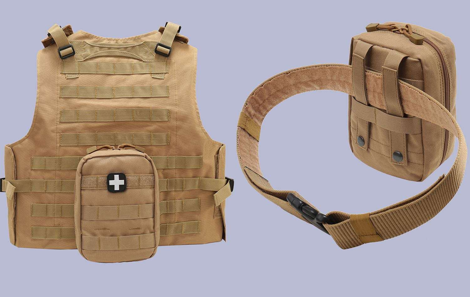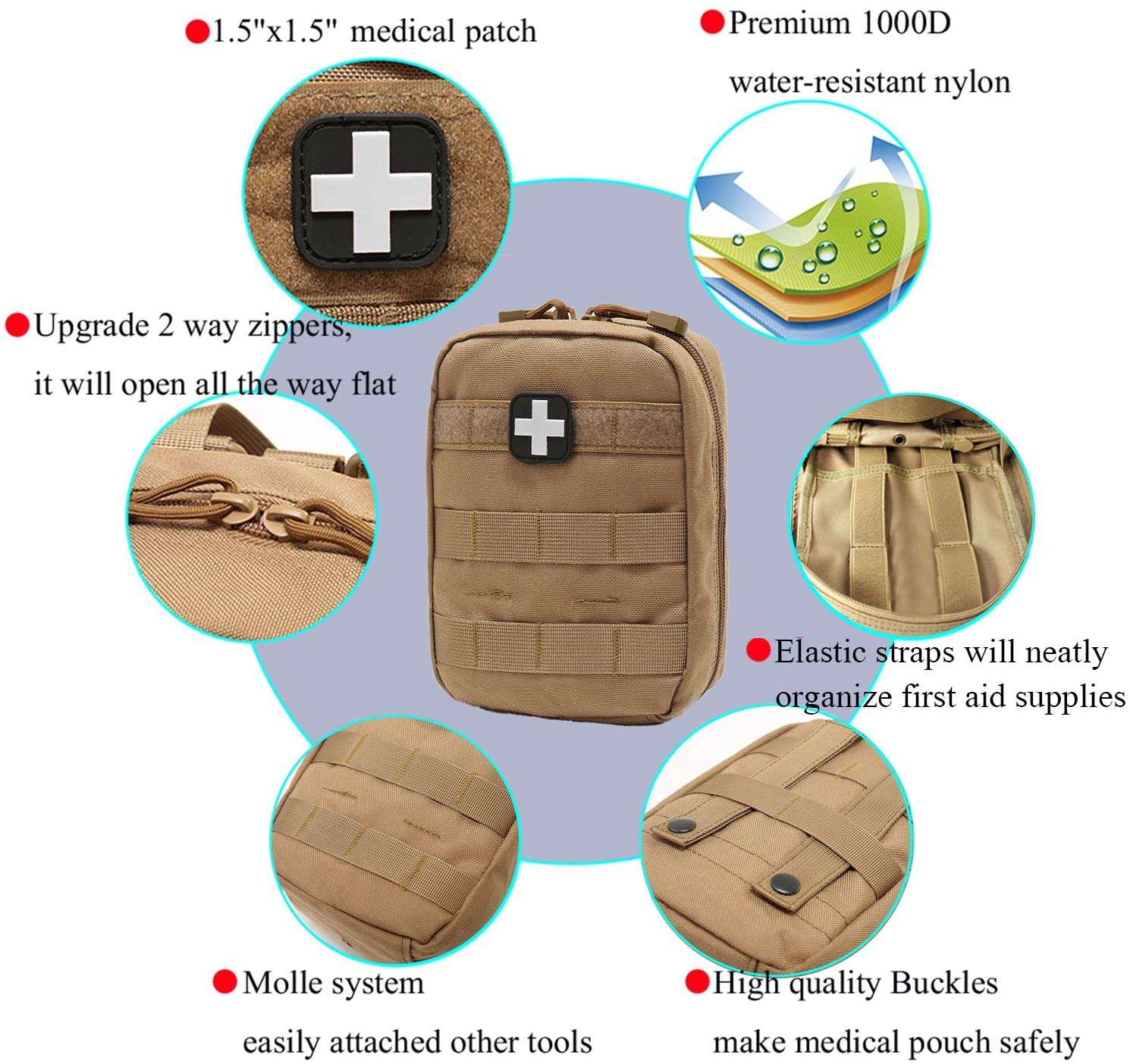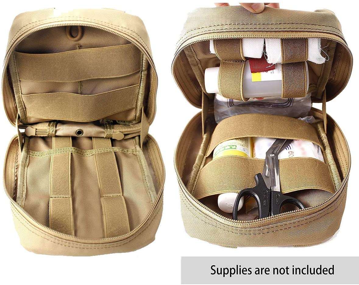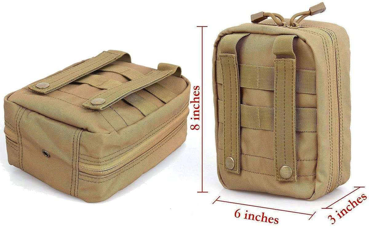 DIMENZIJE: 8"V X 6"Š X 3"G. NETO TEŽA: 2,2 LB. MATERIAL: Izdelana iz visokokakovostnega 1000D najlona. Taktična torbica, ki vsebuje tesne, notranje elastične trakove in prostoren žep za vitalne pripomočke za preživetje in prvo pomoč.