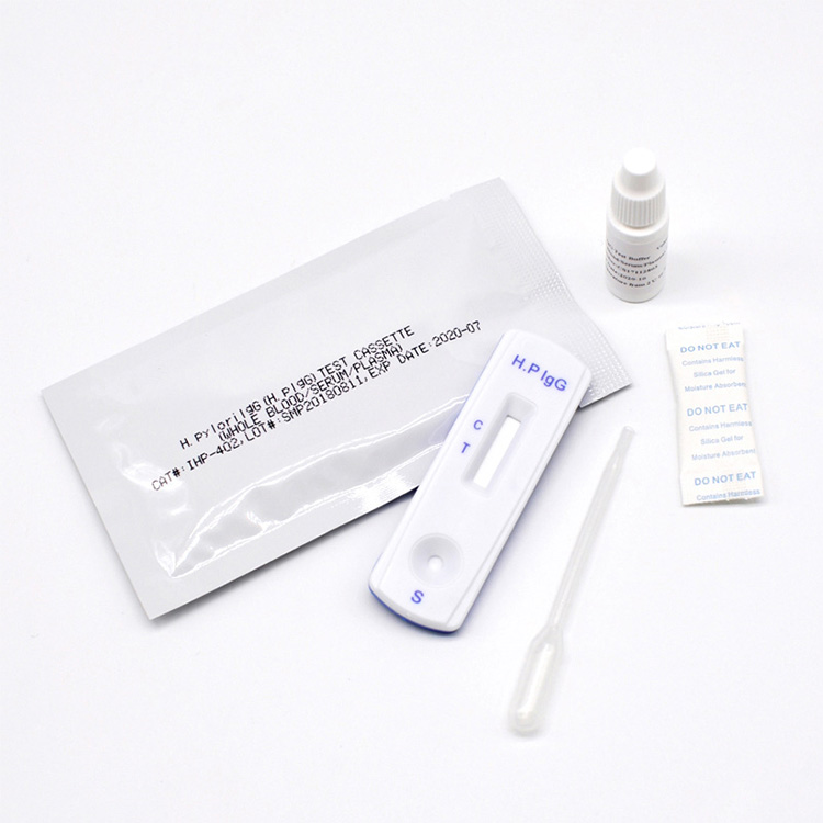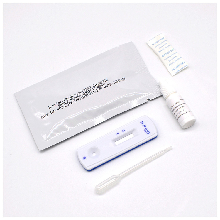 One step h pylori igg kaseta za krvni test protiteles: Test H. pylori je hiter enostopenjski vizualni test za kvalitativno odkrivanje specifičnih IgG proti Helicobacter pylori v človeškem serumu.