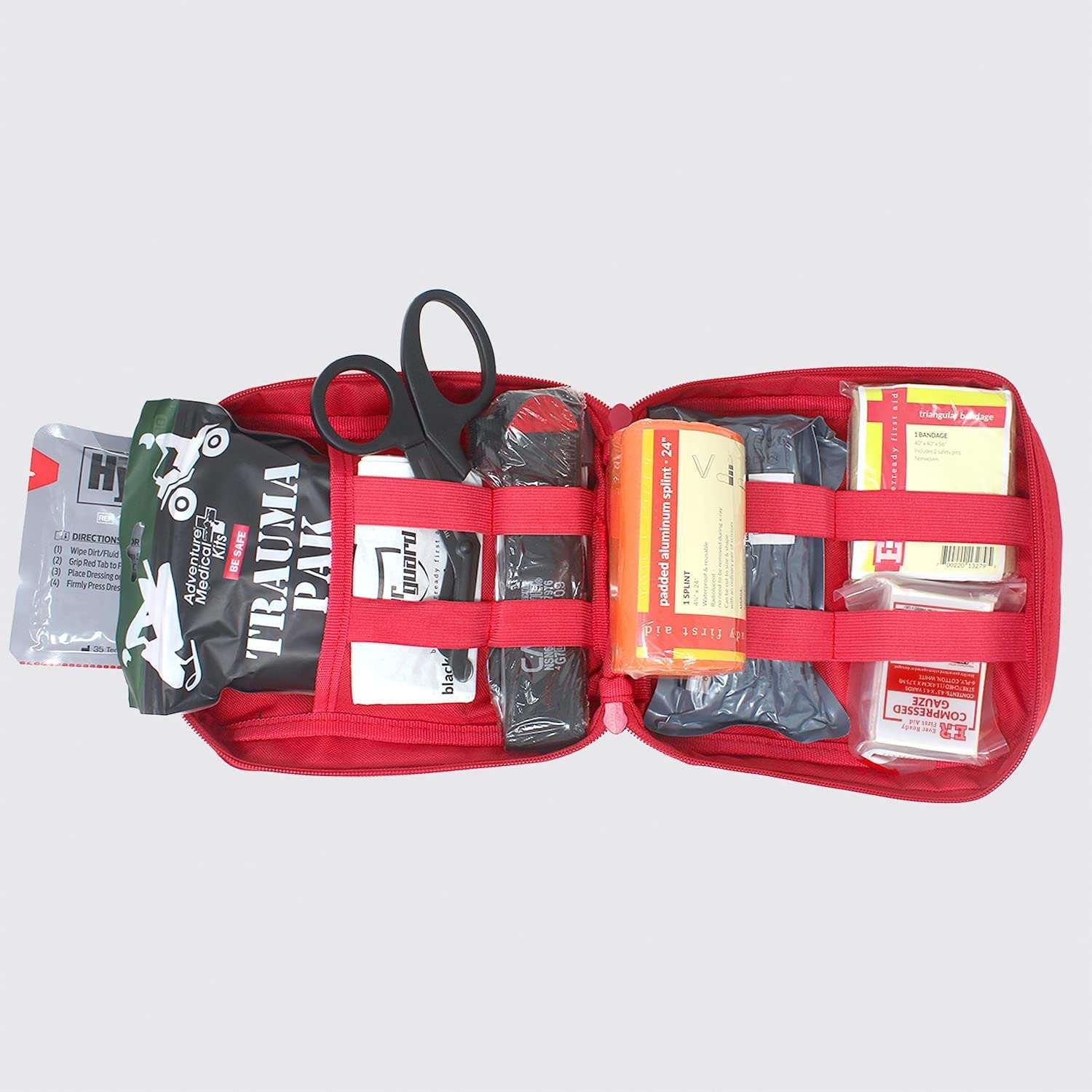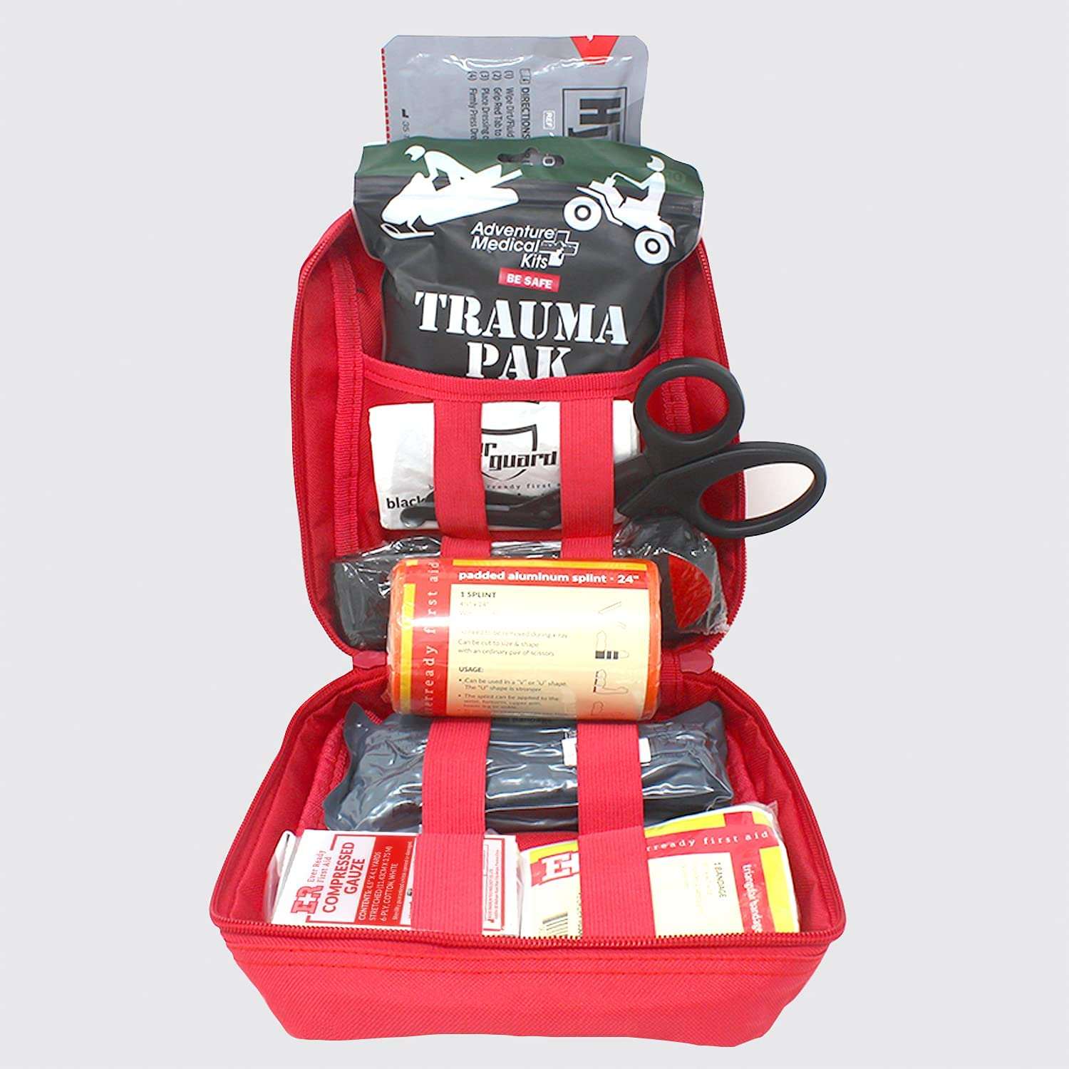 Značilnost rdeče torbice za nujne primere: ta komplet je bil razširjen z dodatnim trikotnim povojom, 24-palčnim oblazinjenim aluminijastim opornikom in dvojnim paketom HyFin Vent Chest Seal, ki vam omogoča zdravljenje še širšega obsega poškodb in nujnih primerov.